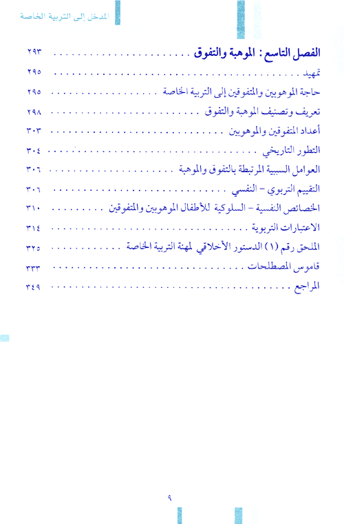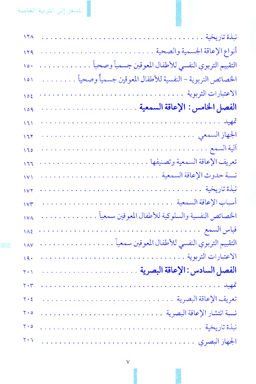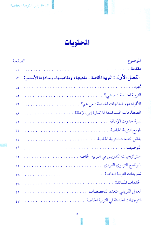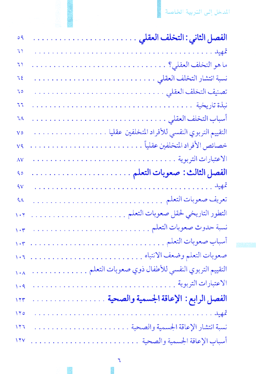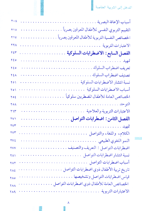 ويتألف هذا الكتاب من تسعة فصول، يستعرض الفصل الأول معنى التربية الخاصة وأهدافها، ...ويقدم نبذة موجزة عن تطورها التاريخي، ويناقش بعض القضايا المهمة ذات العلاقة بها، وتعالج الفصول الثمانية الأخرى في الكتاب فئات الإعاقة الرئيسية وهي التخلف العقلي، وصعوبات التعلم، والاضطرابات السلوكية، والإعاقة الجسمية، والإعاقة السمعية، والإعاقة البصرية، والاضطرابات الكلامية واللغوية، إضافة إلى التفوق والموهبة باعتبارهما فئة تربوية خاصة. وتبين هذه الفصول ماهية تلك الفئات، والعوامل السببية المرتبطة بها، وأبعادها النفسية-التربوية، والاعتبارات التربوية الخاصة بها. إقرأ المزيد