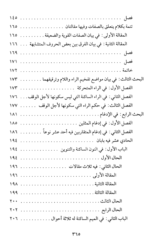 ولإعطاء فكرة أوضح عن موضوعات الكتاب، وجدنا أنه لمن المناسب أن نذكر موضوعات الكتاب التي تضمنها، فالكتاب مبني على "مقدمة ومقصد وخاتمة". أما المقدمة ففيها خمسة فصول وتتمة، وأما الخاتمة فهي في التنبيهات والتحذيرات. أما الملاحق فشملت أكثر من موضوع، فبعد فراغه من الخاتمة قال: "ولنذكر من الحروف وما ينبغي التنبيه عليه". وذكر بعد ذلك فصلاً في مؤهلات معلم الأداء، وفصلاً آخر في كيف يبدأ المعلم بالتعليم؟ ثم دراسة تطبيقية لما جاء في "جهد المقل" من أحكام وآراء في التجويد طبقها على سورة الفاتحة من خلال أربعة أبحاث، ثم فصلاً في بيان معنى التلاوة والقراءة ثم وصايا عن التجويد، وأخيراً رسالة الياءات. إقرأ المزيد