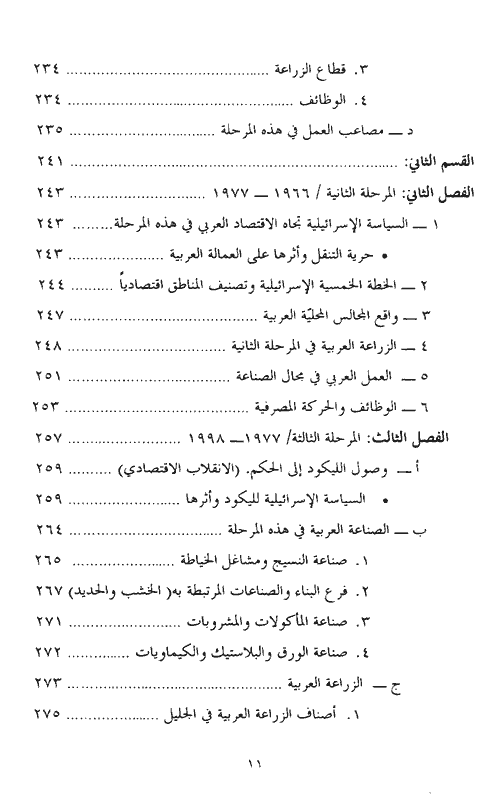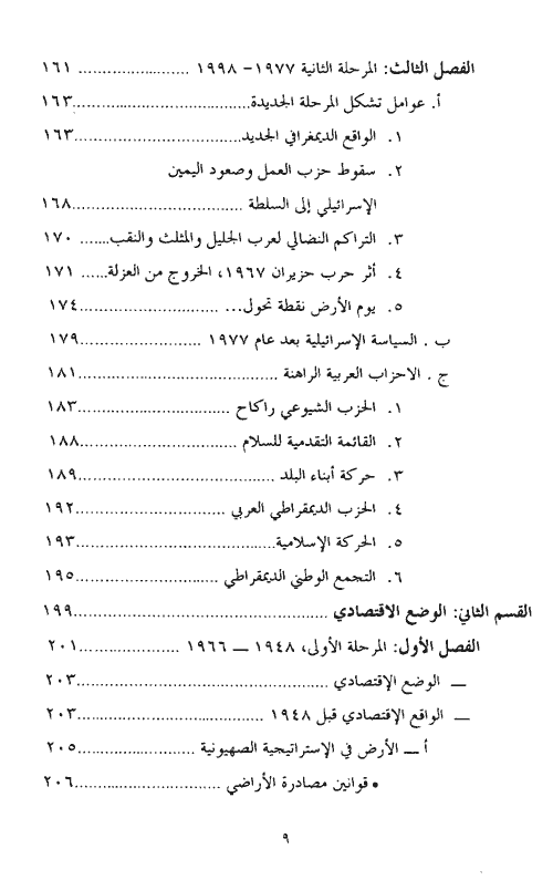 أما القسم الثاني فخصص لدراسة الوضع الاقتصادي الفلسطيني بين سنة 1966 و1998. وفيه تم الحديث عن عدد من النقاط المهمة مثل: الوضع الاقتصادي مثل 1948، والأرض في الاستراتيجية الصهيونية وقوانين مصادرة الراضي، بداية تحول اليد العاملة العربية في الزراعة إلى العمل المأجور، السياسة الإسرائيلية تجاه الاقتصاد العربي من الاقتصادية، الزراعة العربية وأصنافها ومستقبل الزراعة والاقتصاد العربي.