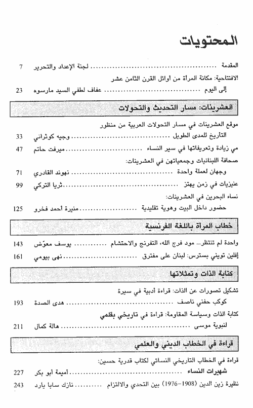 تتطرق البحوث كذلك إلى الوسائل التي اتبعتها المرأة العربية لمقاومة أوضاعها الاجتماعية واقتصادية والسياسية التي كان الخروج عليها يعد أغلالاً وقسساراً ولا تغفل الباحثات معالجة الجوانب القانونية حيث تشير الدراسات إلى أن وضع النساء الشرعي ازداد سوءاً بعد أن تشكل نظام الدولة الحديثة في مستهل القرن العشرين.نبذة الناشر:من المعروف أن العالم شهد تغيرات هامة جداً في المرحلة التي تلت الحرب العالمية الأولى. وفي العالم العربي شكلت هذه المرحلة مفصلاً تأسيسياً للحداثة الفكرية والسياسية والاقتصادية والاجتماعية، وأسست لتشكل الدول العربية الحديثة.