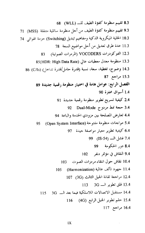 كما أنه بهذا السرد قد ربط الماضي بالحاضر، مما كوّن قصة التطور لحقبة امتدت على مدى ثلاثة عقود عاشها المؤلف وشارك في أحداثها وفعاليتها. ثانياً: إعطاء ملامح لمستقبل الاتصالات اللاسلكية واستخدام الطيف الترددي وأسلوب إقامة الشبكات. ثالثاً: استخدم أسلوب الشرح المبسط في تقديم المعلومة عن الخبرة النظرية والعلمية، والاستعانة بعلاقات رياضية مبسطة مما يتيح الفرصة لشريحة كبيرة من العاملين في حقل الاتصالات، أو من يسعى للدخول فيه الاستفادة منها ونظراً لاحتمال كون بعض المفردات أو المصطلحات العربية المستخدمة في ترجمة هذا الكتاب غير مألوفة للقارئ، فقد تم الحرص على طباعة ما يقابلها باللغة الإنكليزية تجنباً للالتباس وإضعاف المعنى التقني للنص، وتسهيلاً لتواصل نقل المعرفة من المراجع باللغة الإنكليزية. إقرأ المزيد