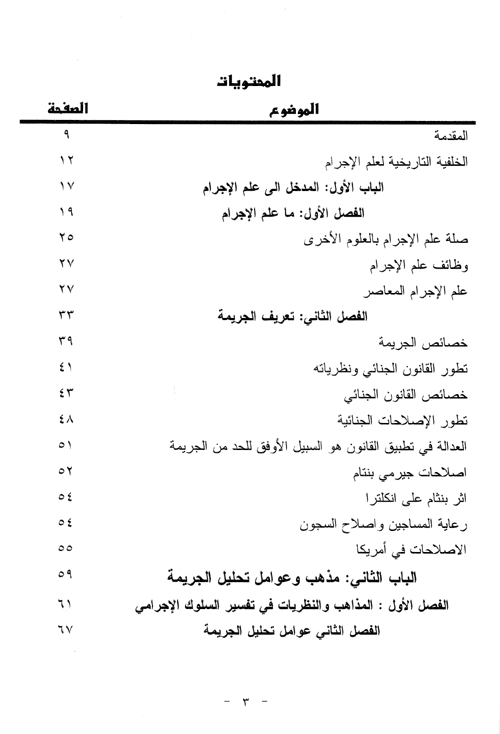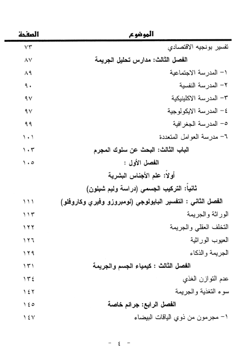 حيث تخلص إلى أن الجريمة بمفهومها العام هي أفعال تضر الفرد والمجتمع معاً، وهي تتميز بظهور خصائص معينه ترتبط بطبيعة السلوك الذي يمكن أن يطلق عليه اسم الجريمة وبسط المؤلفة بشيء من التفصيل المذاهب والنظريات في تفسير السلوك الإجرامي كالمذهب التقليدي والمذهب الوضعي أو الواقعي قبل أن تبحث في عوامل تحليل الجريمة كما يطرحها إتباع المدرسة الاجتماعية والمدرسة النفسية، والمدرسة الإكلينيكية، والمدرسة الإيكولوجية، والمدرسة الجغرافية. كما لا تغفل المؤلفة الحديث عن سلوك المجرم من خلال عرضها لآراء وليم شيلدن، ولومبروزو وفيري وكاروفلو.