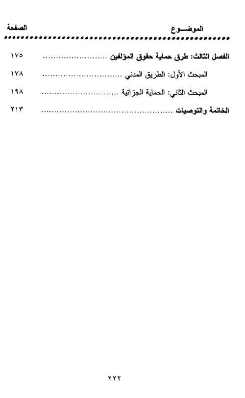 وفي الفصل الثالث، سنتناول طرق حماية حقوق المؤلفين، فشمل ذلك الطريقتين الرئيسيتين، ففي المبحث الأول تكلمت عن الطرق المدنية للحماية كالإجراءات التحفظية، وإتلاف المصنفات المقلدة، ومصادرتها، والتعويض. وفي المبحث الثاني تناولت الطرق الجنائية للحماية والتي تكون بفرض عقوبات جزائية كالحبس والغرامة المالية. إقرأ المزيد