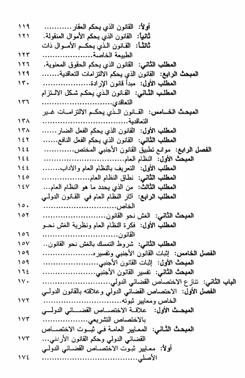 بدئ الكتاب بباب تمهيدي شمل تعريف القانون الدولي الخاص وتطوره وموضوعاته،إضافة إلى توضيح الطبيعة القانونية لقواعد القانون الدولي الخاص ومصادرها، ومن ثم تطرق المؤلف إلى تنازع القوانين من خلال التعريف به وذكر أنواعه وتكامله التاريخي،وكذلك أساس تطبيق القانون الأجنبي ومراحله،والقانون الواجب تطبيقه في النزاع المشوب بعنصر أجنبي وفقاَ لقواعد الإسناد الأردنية،وموانع تطبيق القانون الأجنبي المختص،إضافة إلى الإشارة إلى موضوع إثبات القانون الأجنبي وتفسيره.