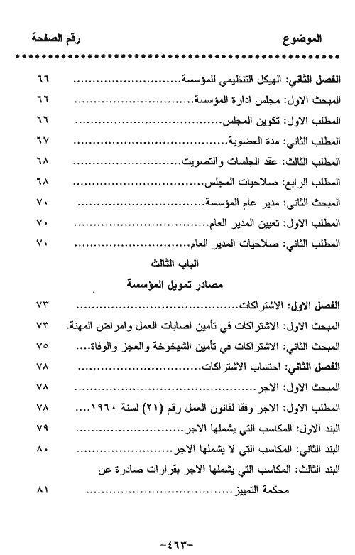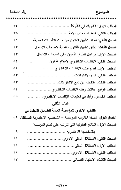 وأخيراً تم التوقف عند حقوق المؤمن عليه المصاب. أما تأمين الشيخوخة والعجز والوفاة فكان مدار بحث في الباب الخامس. ونظراً لأن الحقوق المقررة للمؤمن عليهم في قانون الضمان في تأمين إصابات العمل وأمراض المهنة والشيخوخة والعجز والوفاة لا بد من تحديد قواعد لتسويتها فقد خصص الباب السادس للدراسة هذه القواعد من حيث تم تحديد الجهات المختصة بتسوية هذه الحقوق من خلال عرض التعليمات التنفيذية التي أصدرها مجلس إدارة المؤسسة بتشكيل هذه الجهات.