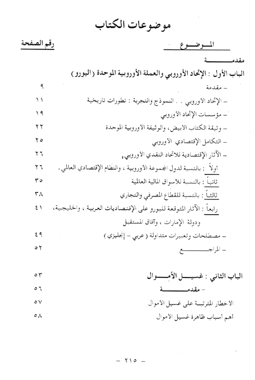 ومن هذا المنطلق، فإن المؤلف يتناول في هذا الكتاب الموضوعات الأربعة التالية، على أن يتابع دراسة وتحليل وتقديم الأحداث والتطورات الاقتصادية الأخرى في مؤلفات جديدة تصدر تباعأً قريباً بإذن الله. أولاً: الاتحاد الأوروبي والعملة الأوروبية الموحدة- اليورو... وأهم ما يسعى إليه هذا الاتحاد هو الاتجاه نحو صياغة عمل يتم بمقتضاه إنشاء مجلس اقتصادي موحد، واستكمال الوحدة الاقتصادية الجمركية وباقي مراحل السوق الأروربية المشتركة..