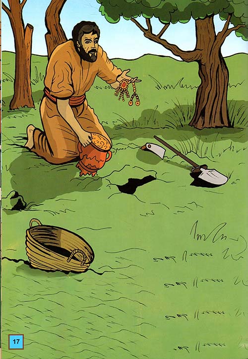 نبذة نيل وفرات:قال رسول الله (صلى الله عليه وسلم): "اشترى رجل من رجل عقاراً له، فوجد الرجل الذي اشترى العقار في عقاره جرة فيها ذهب، فقال له الذي اشترى العقار: خذ ذهبك مني، إنما اشتريت مناك الأرض، ولم أبتع منك الذهب، فقال الذي شرى (باع) الأرض: إنما بعتك الأرض وما فيها. ...قال: فتحاكما إلى رجل، فقال الذي تحاكما إليه: ألكما ولد فقال أحدهما: لي غلام، وقال الآخر: لي جارية (بنت). قال: أنكحوا الغلام الجارية، وانفقوا على أنفسكما منه، وتصدقا".