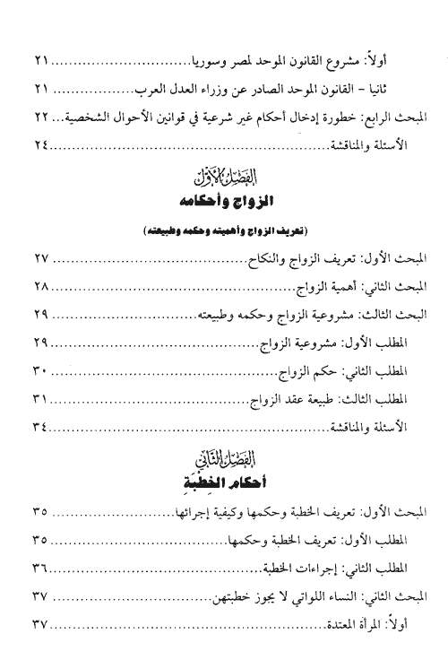 ولمزيد من تحقيق المنهجية في هذا الكتاب وضعت في نهاية كل موضوع من موضوعات الكتاب جملة من الأسئلة والمناقشات، وهي كفيلة إن عني الطالب بالإجابة عليها والتأمل فيها أن تعمق لديه فقه مسائله، وتجعله يدقق في أسرار الأحكام التي تضمنها، كما تلفت نظره بقوة إلى أدلة الأحكام، ووجه دلالتها على ما سيقت النصوص لأجله، ومن الأسئلة ما وضع لتوجيه أنظار الطلبة إلى تعليل الأحكام، ولم أهمل الأسئلة التي تكشف عن قدرة الطالي على إصدار الأحكام على الواقعات التي يسأل عنها بضرب الأمثلة لما يمكن أن يقع من حالات مختلفة إلى حكم من القاضي أو المفتي. وقد ألحقت بهذه الطبعة قانون الأحوال الشخصية في آخر الكتاب ليسهل الرجوع إليه. إقرأ المزيد