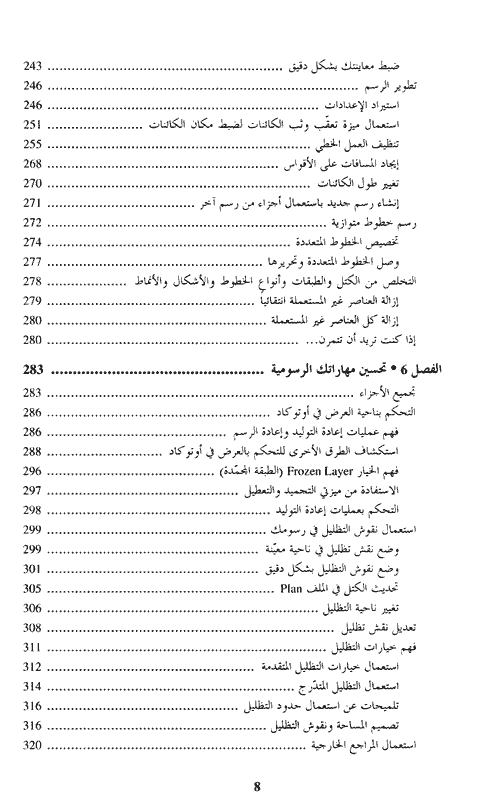 إن تغطية هذا الكتاب تشمل: التنقل في واجهة أوتوكاد، إنشاء وتطوير رسوم لأوتوكاد، إدارة مشاريع الرسوم، التحكم بنوعية طباعة الرسوم، مراجعة الرسوم قبل الطباعة على أساس "ما تراه تحصل عليه"، استكشاف الميزات المخفية، إجادة عملية النمذجة الثلاثية الأبعاد والتصيير، تخصيص أوتوكاد، إدارة الرموز المخصصة...