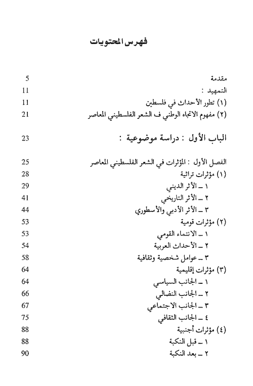 على المستوى الموضوعي، يبحث الكتاب تطور العوامل المؤثرة في الشعر الفلسطيني المعاصر، الدينية منها والتاريخية والأدبية والقومية والإقليمية والعالمية، ثم يبحث التطور في ...مضمون الشعر الفلسطيني قبل النكبة وبعدها.