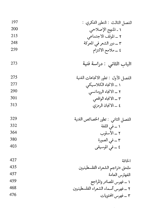 وعلى المستوى الفني، يبحث في اتجاهات الشعر الفلسطيني الكلاسيكية والرومانسية والواقعية والرمزية وتطورها قبل النكبة وبعدها، ثم يبحث في تطور الخصائص الفنية اللغوية والأسلوبية والتصويرية والموسيقية. بالإضافة إلى التعريف بمعظم الشعراء الفلسطينيين الذين شملتهم الدراسة.