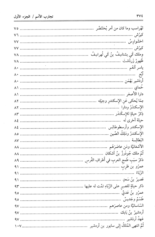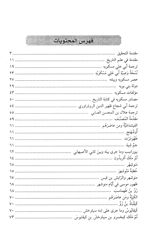 وهذا الكتاب "تجارب الأمم" ينشر للمرة الأولى بكامل نصه، في هذه الطبعة حيث تم الاعتماد في إعداده على النسخة الإيرانية الصادرة عن "دار سروش للطباعة والنشر" طهران 1366هـ/1987م. وهذه الطبعة صدرت في مجلدين فقط وهي تشمل بدء الكتاب أي من مقدمة المؤلف حتى حوادث سنة 103هـ، وكذلك تم اعتماد الطبعة المصرية الصادرة عن دار الكتاب الإسلامي، القاهرة، وهذه الطبعة صدرت في ثلاثة مجلدات، وهي تبدأ بذكر حوادث سنة 295هـ، حتى حوادث سنة 369هـ وهو آخر ما كتبه أبو علي مسكويه، وأضيف إليه "ذيل تجارب الأمم" لظهير الدين أبي شجاع محمد بن الحسين بن عبد الله بن إبراهيم الروذراوري. وهذا الذيل يشمل حوادث سنة 369هـ، حتى حوادث سنة 389هـ. وأضيف كذلك إليهما قطعة من تاريخ أبي الحسين هلال بن المحسن بن إبراهيم الصابي الكاتب. وهذه القطعة تحتوي على حوادث خمس سنين أولها سنة 389هـ، وآخرها سنة 393هـ. إقرأ المزيد