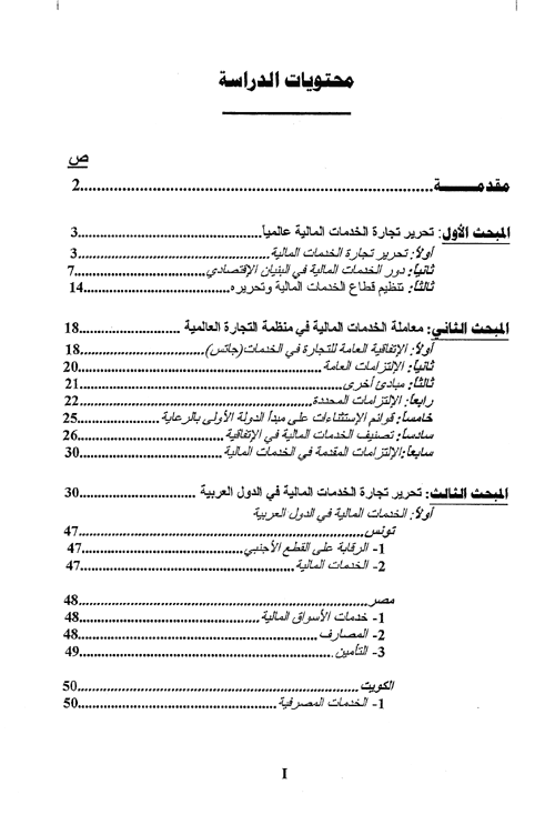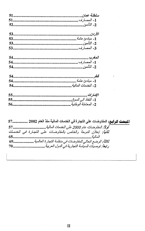 تحرير التجارة في الخدمات المالية في إطار منظمة التجارة العالمية: التزامات الدول العربية وقضايا المفاوضات المالية
