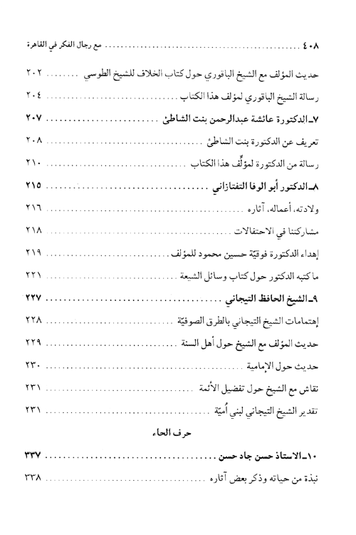 ودق اتصل ببعضهم اتصالاً شخصياً أو عن طريق المراسلة لأن كان بعيداً عن مصر، ومن أمثال من ترجم لهم المؤلف في هذا الكتاب الأستاذ "أحمد حسن الباقوري، الأستاذ أمين الخولي، الأستاذ خالد محمد خالد، الدكتور شوقي ضيف، وطه حسين، عائشة عبد الرحمن(بنت الشاطئ) وآخرون... إقرأ المزيد