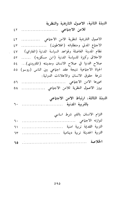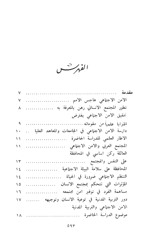 وكي يحقق هذه الأهداف لا بد له من الإحاطة بحاجاته الأساسية وبسبل تأمينها والتغلب على موانعها ومعوقات فتحقيق الأمن الاجتماعي يفترض الوقوف على مقوماته وسبل الوصول إلى أهدافه في هذا الإطار تأتي الدراسة في هذا الكتاب حول الأمن الاجتماعي، مقوماته وتقنياته وارتباطه بالتربية المدنية. وذلك في محاولة لإيجاد نظرية عامة للأمن الاجتماعي للانطلاق منها نحو العمل على تحقيقه بالاستناد إلى ما توفره هذه النظرية من قواعد وقوانين. وقد عمد الباحث في دراسته هذه إلى الربط ما بين الأمن الاجتماعي والتربية المدنية، لأن تحقيقه يفرض حتماً قيام عملية تعلم على الحياة الاجتماعية السليمة، أي قيام تربية مدنية واعية لأهدافها تمكن الإنسان من المساهمة بصورة فعالة في بناء أمن مجتمعه واستيعاب ثمرات الجهود المبذولة لتنميته اقتصادياً واجتماعياً وثقافياً. وقد وضعت هذه الدراسة ضمن إطار المجتمع العربي بصورة عامة اعتقاداً من الباحث بأن لهذا المجتمع مقومات إنسانية وروابط تاريخية وحضارية جامعة بين أبنائه، وأن فرقت ما بينهم حدود وسدود شيدتها الظروف السياسية وغير السياسية. والتي هي ليست مجال عرض في هذا المجال. إقرأ المزيد