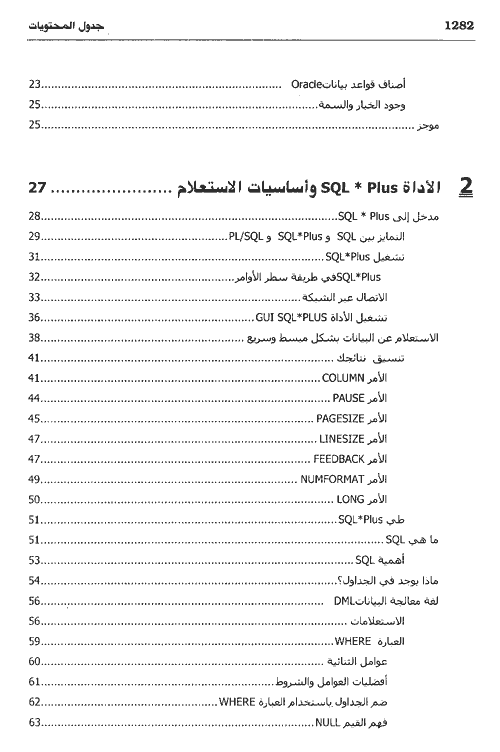 يغطي هذا الكتاب المواضيع التالية: مفاهيم وأدوات ORACLE الأساسية. استخدام الأداة SQL*Plus في تطوير قواعد بيانات ORACLE. التعرف على الجداول، الفهارس، المناقلات، المشاهد، ...القوادح والأغراض. استخدام لغة PL/SQL لكتابة تطبيقات قواعد بيانات ORACLE وإنشاء الحزم البرمجية. حماية قواعد بيانات ORACLE وتحسين آدائها. التعرف على طقم أدوات SQL والخطاطات الجاهزة للاستخدام المعرفة ضمنه. بالإضافة إلى دراستين تمثلان تطبيقاً عملياً للمعلومات المكتسبة عبر الكتاب. إقرأ المزيد