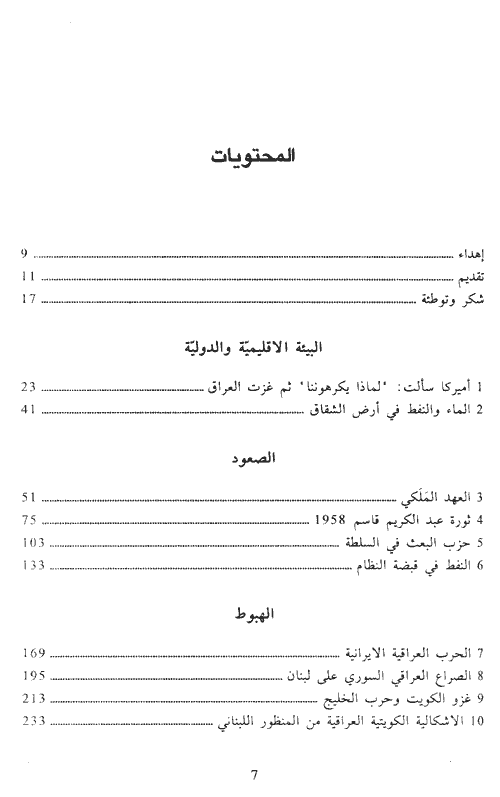 نبذة الناشر:عندما غزت أمريكا وبريطانيا العراق في 20 مارس/آذار 2003، كانت البلاد قد عبرت لتوها ربع قرن من الحروب المتتالية في بطش هذا النظام، هذا البلد الذي بلغ عدد سكانه تقريباً 25 مليون شخص قتلت الحروب والمجازر فيه مليونين، وجرحت وشوهت ما يفوق المليون ودفعت إلى المنافي مليونين، وأضاعت جيلاً كاملاً ...من العراقيين يفوق عشرة ملايين مواطن دون الثامنة عشرة، وإضافة إلى دمار المجتمع، ناهزت الخسائر الاقتصادية السبعمائة مليار دولار، بما حوت من دمار البنية التحتية وخسارة الإنتاج وهدر عظيم للثورة الوطنية... ثم جاء الاحتلال الأميركي المباشر لأرض الرافدين مع ما حمله من احتمالات شتى لمستقبل العراق على الأصعدة الداخلية والإقليمية والدولية... فإما فوضى مستديمة هي خليط من فيتنام وحرب لبنان وإما ما حدث شر لا بد منه لخلق يابان جديد في العراق.