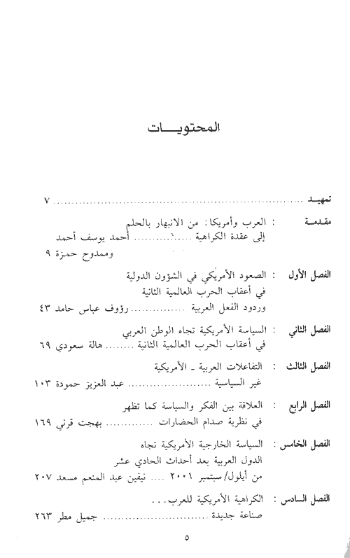 ويظهر الفصل الثاني في الكتاب الذي كتبه د.هالة سعودي بعنوان "السياسة الأمريكية تجاه الوطن العربي في أعقاب الحرب العالمية الثانية" الجوانب البنيوية في هذه السياسة والتي تكلفت بتفويض الإدراك العربي الإيجابي للدور الأمريكي في المنطقة وزرع عوامل الصدام بين الولايات المتحدة الأمريكية والعرب.