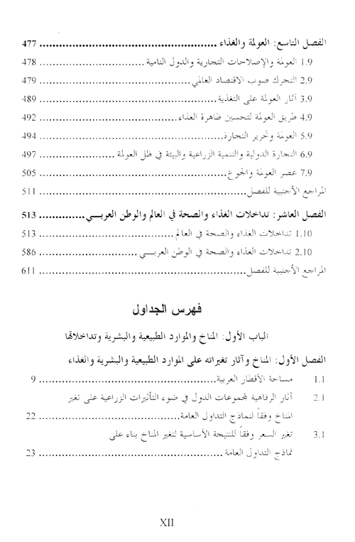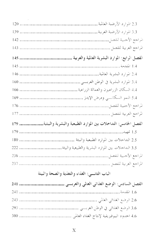 يقع الكتاب في قسمين يتحدث الأول منها عن المناخ العالمي وتغيراته خلال العقود الأخيرة وأثر هذه التغيرات على إنتاجية الموارد الطبيعية من أرض ومياه، وبالإضافة إلى تطور السكان على المستويين العالمي والعربي كون الموارد البشرية أساس المشكلات الغذائية وتدهور البيئة، والتداخلات بين كل من الموارد الأرضية والمائية والبشرية وتفاعلها مع البيئة والغذاء. أما القسم الثاني منه فنعرض فيه لمشكلة الغذاء والتغذية عالمياً وعربياً، حاضرها ومستقبلها وطرق حلها ونتائجها من فقر وجوع مسيطرين على أكثر من خمس سكان العالم بالإضافة لما ينتج عنهما من مشكلات صحية. كما يستعرض هذا القسم مفهوم العولمة ومدى تأثيرها (إيجابياً وسلبياً) على المشكلة الغذائية ووسائل حلها. وفي الكتاب جداول تخص جميع المواضيع السابقة. إقرأ المزيد