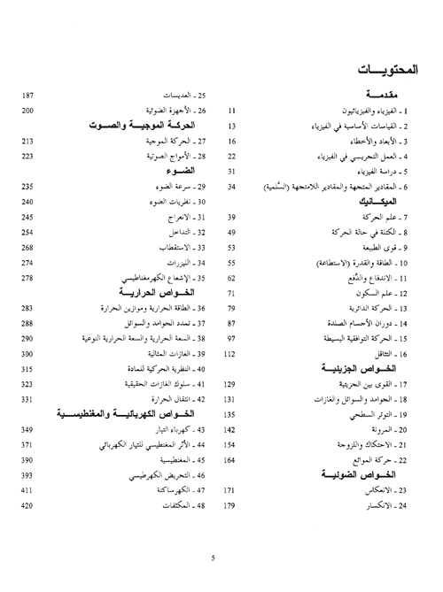 نبذة الناشر:يتناول الكتاب المعارف الفيزيائية من خلال كم هائل من الأمثلة والمسائل النموذجية النظرية والتطبيقية فضلاً عن أمثلة للطلاب يقدمها على هيئة مسائل وتحريات على الطالب تنفيذها لتحقيق مزيد من الفهم والخبرة. ويبحث الكتاب في: الفيزياء والفيزيائيون والقياسات الأساسية في الفيزياء والأبعاد والأخطاء ودراسة الفيزياء. الميكانيك, علم الحركة والكتلة في حالة ...الحركة وقوى الطبيعة والطاقة والقدرة والتثاقل. الخواص الجزيئية, القوى بين الجزيئية, الجوامد والسوائل والغازات, التوتر السطحي, المرونة, حركة الموائع. الخواص الضوئية, الانعكاس والانكسار والعديسات والأجهزة الضوئية. الحركة الموجية والصوت, الحركة الموجية والأمواج الصوتية. الضوء سرعته ونظرياته والانعراج و الاستقطاب والليزرات والإشعاع الكهرطيسي. الخواص الحرارية. الخواص الكهربائية والمغنطيسية. نبائط أنصاف النواقل. الفيزياء النووية والفيزياء الذرية. إقرأ المزيد