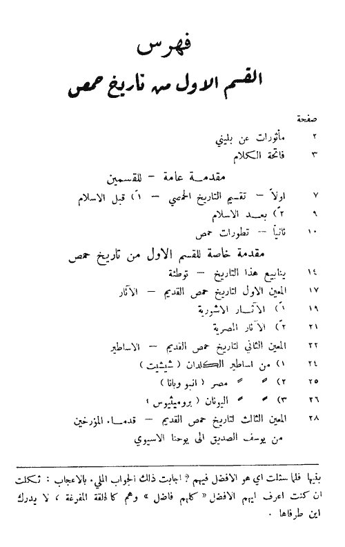 ويخلص الكاتب إلى أن الحمصيين عاشوا نحو أربعة قرون بعد إنشاء مدينتهم في رخاء عيش إلا بعض النوازل الطبيعية التي ليس في مقدور الإنسان دفعها. وسنعرض القسم الأول من الكتاب تاريخ حرص في عهد الروثان والعمالقة والأمويين، كذلك في أيام المصريين والرعاة والحثيين والمطانيين والفينيقيين والآراميين مروراً بالأشوريين والكلدان والفرس وانتهاءً بعهد القياصرة الحمصيين والتدامرة. في حين يعرض القسم الثاني من الكتاب لتاريخ حمص من ظهور الإسلام وحتى يومنا هذا. إقرأ المزيد