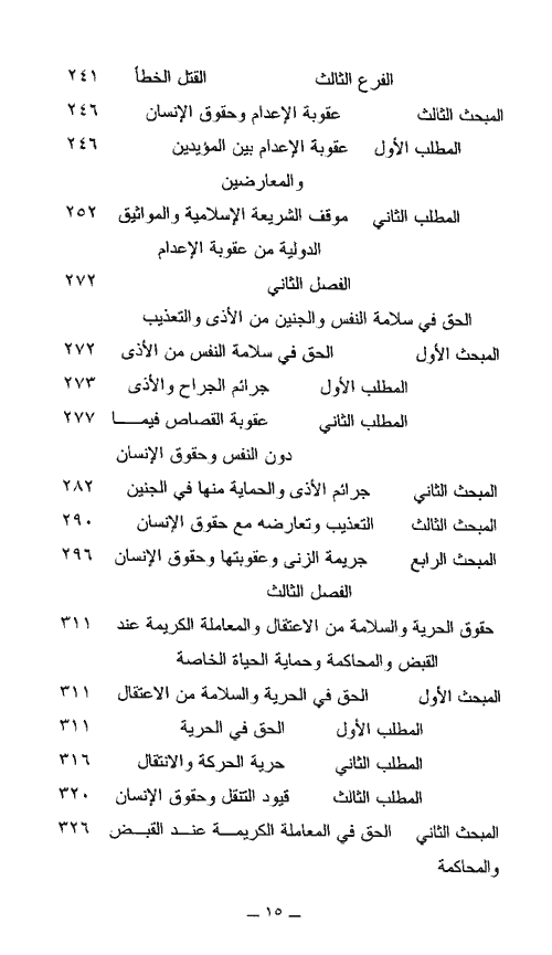 كما وتناول في الرسالة حقوق الأقليات في الشريعة الإسلامية وما تثيره مسألة وضع العقوبات الحدية على غير المسلمين، ونعرض أيضاً إلى اتفاق الشريعة والمواثيق الدولية على حقوق المتهمين في المحاكمة العادية والمعاملة الكريمة وشخصية العقوبة، إلى جانب هذا تناول في الدراسة بعض النصوص في القوانين الجنائية والإجرائية الماسة بحقوق الإنسان في القانون الجنائي والإجراءات الجنائية والأمن العام وغيرها وتوصل إلى مخالفتها الشريعة للمواثيق الدولية. إقرأ المزيد