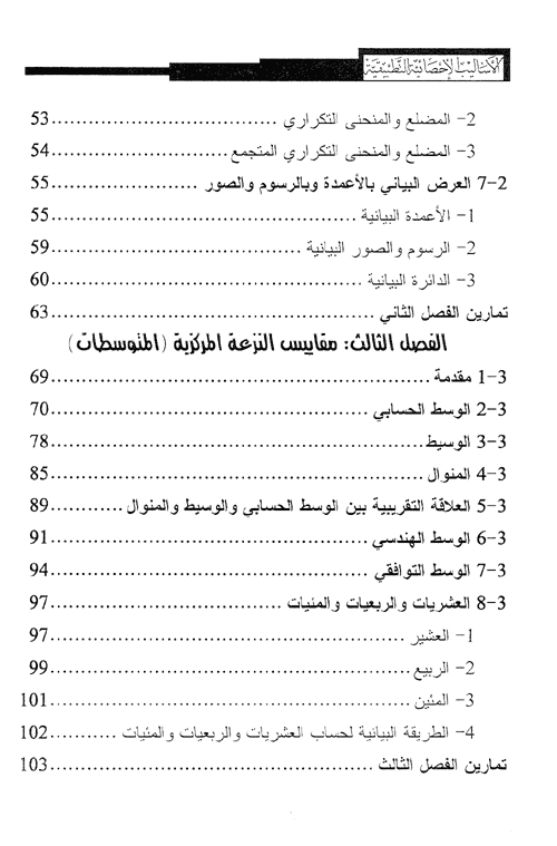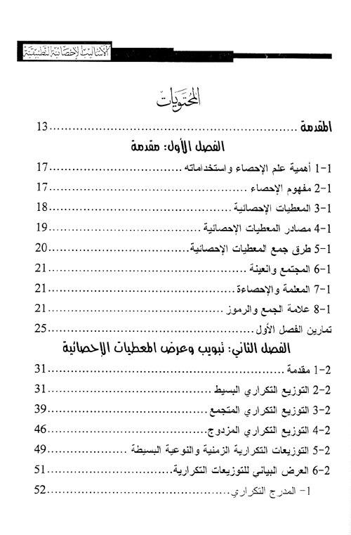 نبذة الناشر:يتناول الكتاب أوسع الطرق والأساليب الإحصائية استخدماً معززة بالتطبيق العملي وحالات استخدامها وبما يفي بحاجة النشطة الإدارية والاقتصادية والاجتماعية وغيرها من الفعاليات. فلعد إعطاء صورة واضحة عن مفهوم الإحصاء وأنواعه وطرق جمع البيانات الإحصائية وطبيعة هذه البيانات، تم البدء في أسلوب جدولة البيانات وعرضها بيانياً لأجل تهيئتها لعملية التحليل والوقوف ...على مدلولاتها، ولقد أعقب ذلك تناول خصائص البيانات لتشمل مقاييس التشتت والترعة المركزية (المتوسطات) بالإضافة إلى المقاييس غير المركزية، وتلا ذلك التطرق إلى الاحتمالات في الفصل الخامس للمرور على مبادئها وتطبيقاتها.