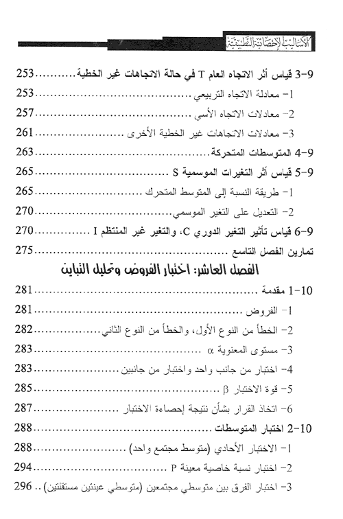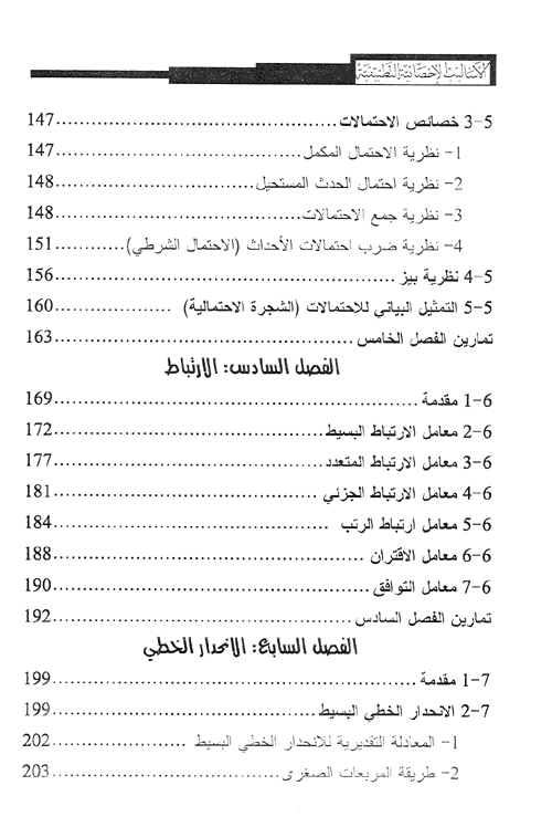 كما وفر الكتاب في فصوله السادس والسابع والثامن مواضيع الارتباط والانحدار بنوعيها الخطي وغير الخطي، في حين تناول الفصل التاسع موضوع السلاسل الزمنية ابتداءً من مفهومها وعناصرها ولغاية طرق قياس كل من هذه العناصر، وفي الفصل العاشر تم التطرق وبشيء من التفصيل إلى اختبار الفروض وتحليل التباين. إقرأ المزيد