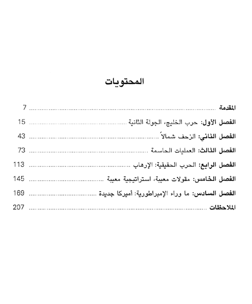 كما يكشف عن الخطط والتفاصيل التي رافقت اندفاع القوات الأمريكية نحو الأراضي العراقية مبيناً اثر الاستخدام الأمثل للمعلومات الاستخبارية في تحقيق النصر السريع الحاسم. وهو يقدم للقراء تقيماً لنتائج الحرب على المستويات العسكرية والسياسية كاشفاً عن علاقة ما جرى بالقاعدة. كما يبين كيفية استخدام الإدارة الأمريكية للأدلة والخطابات بشكل انتقائي لتبرير الحرب على العراق.نبذة الناشر:"عندما زرت البنتغون في تشرين الثاني/نوفمبر 2001، كان لدى أحد العسكريين الكبار بعض الوقت لتبادل الحديث معي، قال لي إننا ما زلنا نعتزم التحرك ضد العراق، لكن ثمة ما هو أكثر من ذلك، وتجري دراسته كجزء من خطة حملة تمتد على خمس سنوات، وأن هناك سبعة بلدان تبدأ بالعراق، ثم سوريا ولبنان وليبيا وإيران والصومال والسودان. لذا خطر في بالي أن هذا ما يقصدونه عندما يتحدثون عن "تجفيف المستنقع". كان ذلك دليلاً آخر على نهج الحرب الباردة، يجب أن يكون للإرهاب "دولة راعية"، فمهاجمة دولة-مع الثقة التامة بالقدرة على إسقاطها-أجدى بكثير من مطاردة أفراد ومنظمات غامضة وجمعيات مستترة". إقرأ المزيد