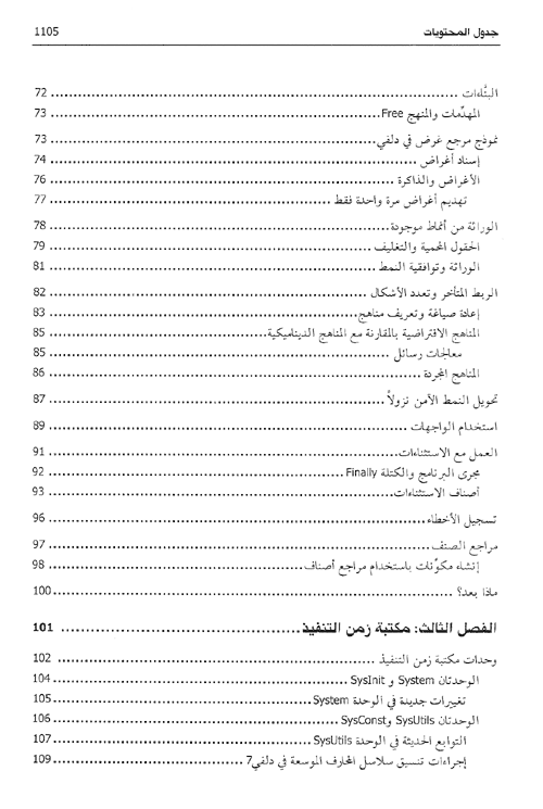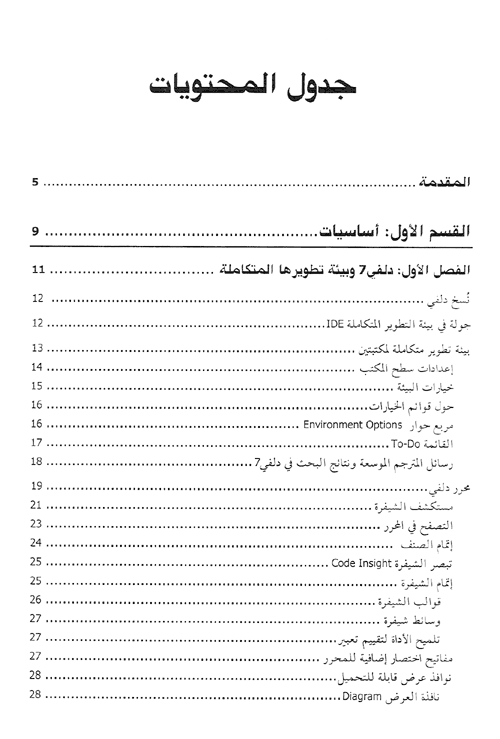 الجزء الثاني "بنية دلفي غرضية التوجه": يغطي بنية تطبيقات دلفي، وتطوير مكونات مخصصة، واستخدام مكتبات وحزم برمجية، والنمذجة باستخدام ModelMaker وcom+.