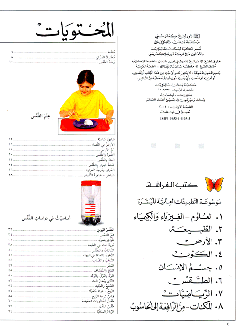 إلى جانب هذا يقدم الكتاب كماًً هائلاً من التجارب العلمية البسيطة والتي تساعد في فهم خفايا الطقس وأسراره، كما ويحتوي الكتاب على صور رائعة ملونة أعدت خصيصاً لهذا المؤلف تبيت ببساطة ووضوح طريقة القيام بهذه المشروعات والتجارب خطوة خطوة. إقرأ المزيد