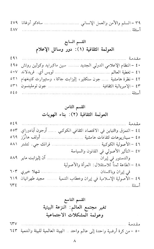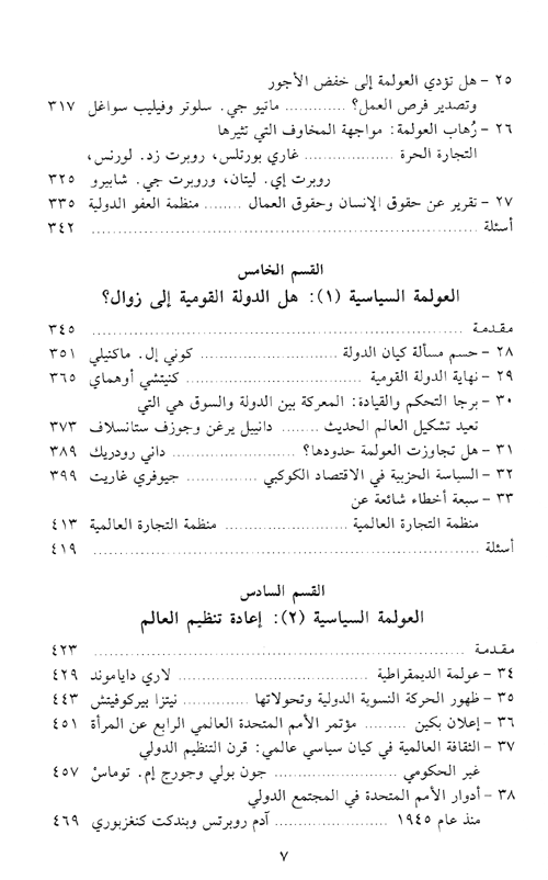 بنجاح واضح ينمكن كتاب العولمة من الإحاطة بنمو جملة الروابط العابرة للحدود القومية، وبالتوسيع العالمي لاقتصاد السوق، وبالانبثاق الظاهر لمجتمع عالمي معقد ولكنه متماسك. يضفي كتاب العولمة معنى على كلمة باتت شعاراً يفي بالأغراض كلها في الخطاب المعاصر.