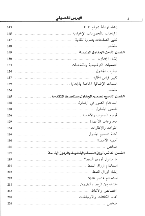 نبذة نيل وفرات:يعدّ هذا الكتاب دورة إرشادية، وخاصة في الفصول التسعة عشر الأولى. ينتقل هذا الكتاب خطياً من المقدمة والنظرة العامة على مفاهيم نشر الويب الأساسية إلى أساسيات إنشاء صفحة ويب ثم إلى الموضوعات المقدمة. فيما يلي موجز لهذا الكتاب: