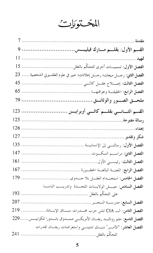 إنها تفاصيل تكشف لأول مرة، بفضل شجاعة المؤلفة وإصرارها على فضح تجاوزات من يسمون قادة الولايات المتحدة الذين ارتكبوا كل أفعالهم المشينة وجرى التكتم عليها بذريعة حفظ الأمن القومي... والكاتبة تتساءل أمن من؟ وسيجد القارئ إجابتها في هذا الكتاب الذي زود بالوثائق المستندات الرسمية والصور التي تثبت صحة ما ذهبت إليه المؤلفة.نبذة الناشر:"غيبوبة الولايات المتحدة الأميركية" سيرة ذاتية موثّقة لضحية التحكم الحكومي الرسمي بالعقل. كاثي أوبراني هي الناجية المُعلَنة الوحيدة التي شُفيت من آثار عملية "مونارك" للتحكم بالعقل التابعة لمشرع وكالة الاستخبارات الأمريكية MK-ULTRA. أما العبارة المحفورة على الحجر الأبيض لمبنى مقر قيادة وكالة الاستخبارات المركزية الأمريكية في لانغلي بولاية فرجينيا والمقتطعة من الكتاب المقدس ومن كتابات القديس يوحنا والتي تقول ".. والحقيقة ستجعلك حراً"، فإنها مثل الوكالة نفسها، حقيقة تماماً، ذلك أن البناء الذي حُفرت عليه تلك العبارة يضم أكبر وأنجح مجموعة من مفبركي الأكاذيب التي تُسهّل شن الحروب النفسية في العالم.