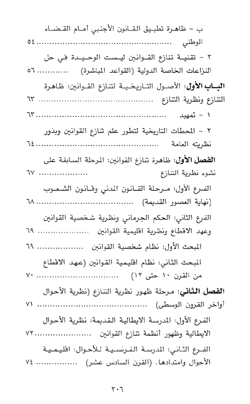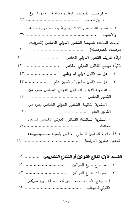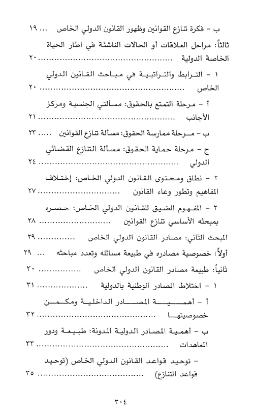 يقع الكتاب في مقدمة وقسمين المقدمة وضعت للتعريف بالقانون الدولي الخاص. والقسم الأول يبحث في منهجيته حل النزاعات الخاصة الدولية عبر تقنية تنازع القوانين، بينما يبحث القسم الثاني في تطور طرق حل النزاعات الخاصة الدولية، الحد من تنازع القوانين. إقرأ المزيد