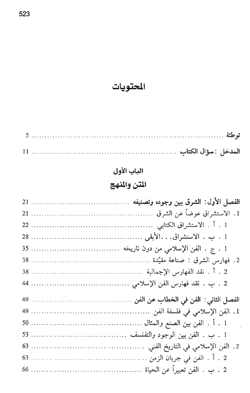 ويصدر هذا الكتاب عن معالجة منهجية ...تنظر إلى الأشياء كما المصنوعات، والاعتقادات كما الأحكام، بوصفها مواد لتعاملات جارية بين البشر، بين تناقل و"تذوق" وتشريع، سواء في الملكية أو في المعنى. وهو ما يؤدي، في عمليات كل عهد، إلى بناء متن عن ثقافة أخرى، وعن فنون أخرى، خارج بيئاتها، وخارج سياقاتها الاستعمالية والوظائفية المخصوصة، بما يشبه إعادة إنتاجها.