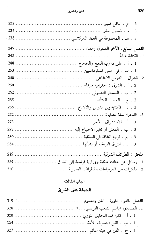 نبذة الناشر:يرقي هذا الكتاب إلى الحدث التأليفي، بموضوعه ومنهجه. وهو يعالج جزئين، في خمسة أبواب وثمانية عشر فصلاً عن ملاحق وفهارس عديدة، ثلاثة عهود من العلاقات، في نطاق الفن، بين فرنسا (وأوروبا) والشرق، بين القرن الخامس عشر والحرب العالمية الأولى: عهد النادر، عهد العريق، وعهد الرسم.