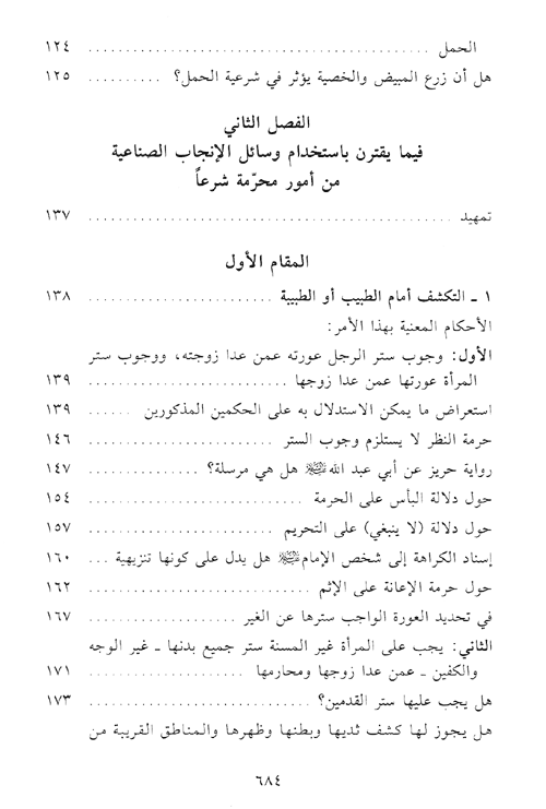 والدراسة التي بين يدي القارئ محاولة للإجابة على هذه التساؤلات من فقه أتباع أئمة أهل البيت عليهم الصلاة والسلام، وذلك من خلال ثلاثة فصول تحدث أولها عن مشروعية الإنجاب بالوسائل الصناعية، وتناول ثانيها الكلام حول ما يقترن باستخدام هذه الوسائل من أمورٍ محرمة في حدّ ذاتها والعناوين الثانوية المرخصة في ارتكابها، وهنا تمّ التحدث عن التكشف أمام الطبيب أو الطبيبة، النظر إلى المواضع المحرمة من بدن المراجع أو المراجعة، لمس المواضع المحرّمة من بدن المراجع أو المراجعة، الاستنماء، إتلاف البويضات المخصبة الفائضة على الحاجة، زرع الأعضاء التناسلية ونحوها كالمني والبويضة، استئجار المرأة للحمل.