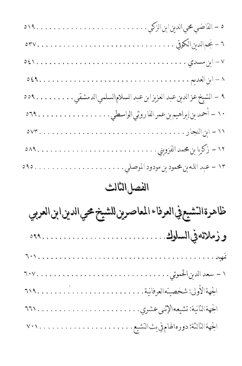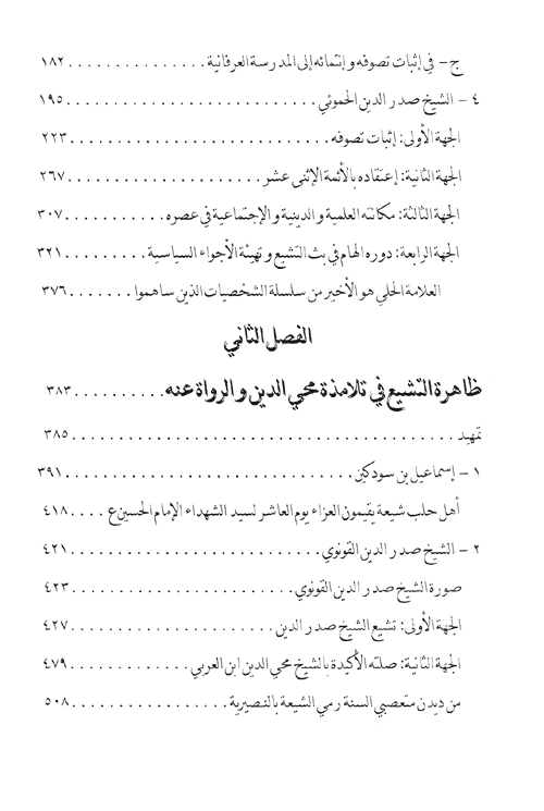 وفي القسم الثاني من الجزء الثاني من كتابه يورد المؤلف تصريحات أعلام السنة بتشيع الشيخ محي الدين ابن العربي أو بتأثره بآراء الشيعة وأنظارهم كما يورد أيضاً تصريحات لإعلام الشيعة صرحوا بتشيعه، وهي مذكورة وفق التسلسل التاريخي كما يذكر في خاتمة هذا الجزء كلمات لإعلام الشيعة الذين أثنوا على الشيخ ابن العربي وتأثروا بشخصيته العرفانية. إقرأ المزيد