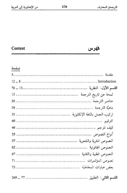 يحتوي كل مجلد بالإضافة إلى الشروحات والتنظيرات في المسائل الترجمية، نماذج منتقاة من مختلف الميادين العلمية والفنية والأدبية والطبية والهندسية والتقنية والثقافة العامة والتاريخ والرواية والرسائل...وترجمتها.