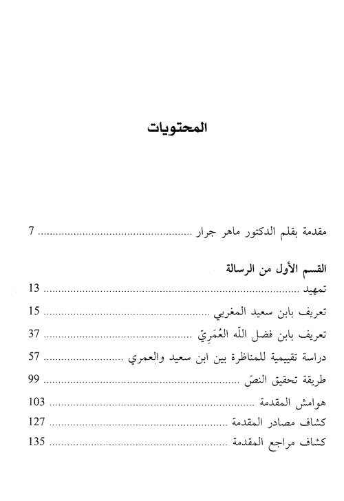 وهذا الكتاب الذي بين أيدينا والذي جاء في موضوع المفاضلات إنما يمثل قطعة من القسم الثاني. وهو عبارة عن دراسة أكاديمية جميلة لفصل من كتاب ابن فضل الله العمري الكبير "مسالك الأبصار في ممالك الأبصار" الذي تحدثنا عنه سابقاً والذي قلنا بأنه عبارة عن كتاب جغرافي جامع بمعنى ما لمعارف عصره من وجهة نظر عربية إسلامية...