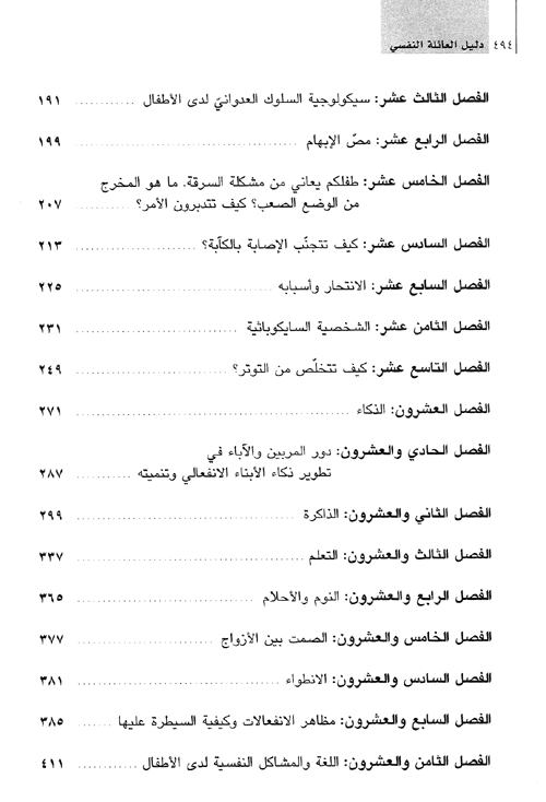 ويبحث أيضاً في تكون الشخصية السوية والذكاء وعلاقته بالسلوك العدواني ومميزات الأفراد ذوي الذكاء الانفعالي. كما يتناول الذاكرة وكيفية تنميتها واستغلالها، ويعرض للعائلة وأفرادها وعلاقتهم بعضهم ببعض منذ تأسيسها مروراً بنموها وتكاثر أفرادها، والعلاقة بمحيطها العائلي والدراسي والاجتماعي. إقرأ المزيد