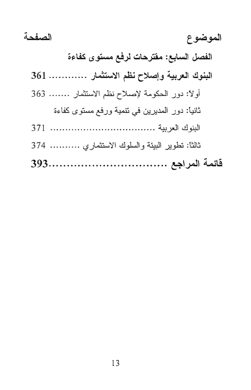 ويقدم المؤلف في نهاية كتابه بعض المقترحات لرفع مستوى الأداء وزيادة كفاءة النشاط الاستثماري للبنوك العربية، ولتحسين فاعلية المناخ الاستثماري، نظراً للدور الكبير الذي تلعبه هذه البنوك في العملية الاستثمارية، والمرهون بإزالة بعض المعوقات-التي تختلف من دولة عربية لأخرى-وزيادة التعاون والتكامل بين الأجهزة الحكومية المسؤولة عن عملية الاستثمار في الدول العربية. إقرأ المزيد
