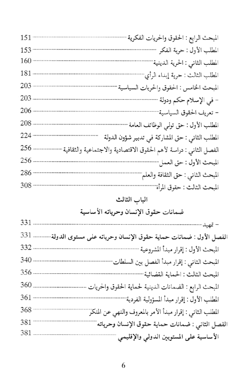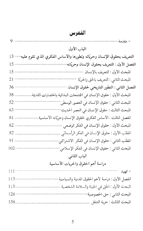 يضم الكتاب ثلاثة أبواب: الباب الأول: في التعريف بحقوق الإنسان وحرياته الأساسية، وتطورها الأساس الفكري الذي تقوم عليه. أما الباب الثاني فهو دراسة شاملة لحقوق الإنسان وحرياته الأساسية، بينما يعرض الباب الثالث لضمانات حقوق الإنسان. وينبغي التنويه إلى أن هذا الموضوع يحتل مكانة الصدارة على الصعيدي المحلي والدولي بين الدراسات القانونية والسياسية التي تحفل بها الجامعات. كما عقدت له المؤتمرات والجلسات النقاشية الهامة على جميع المستويات. إقرأ المزيد