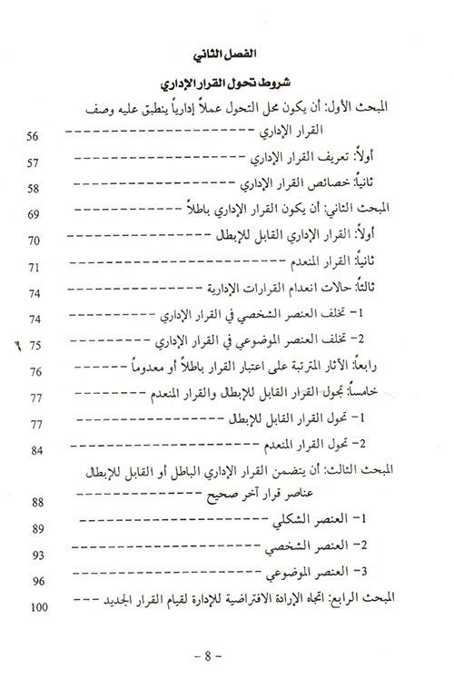 ويتطرق الكتاب (لشروط تحول القرار الإداري)، ومنها: أن يكون محل التحول عملا إداريا ينطبق عليه وصف القرار الإداري، وذكر الكتاب شروطا أخرى، منها، أن يكون القرار الإداري باطلا، وغير ذلك من الشروط. وانتقل الكتاب بعد ذلك إلى (إجراءات التحول وآثاره) فذكر إجراءات التحول عن طريق الإدارة، ولجوء الإدارة إلى التحول بناء على تظلم و غيرها. وحدد الكتاب آثار التحول: زوال القرار السابق ومحو آثاره، وتكوين قرار إداري جديد بأثر رجعي. وتحت عنوان (تميز التحول عن غيره من الأفكار المقاربة) تحدث الكتاب عن التمييز بين تحول القرار وتفسيره، وسحبه، وفكرة إحلال السبب. إقرأ المزيد