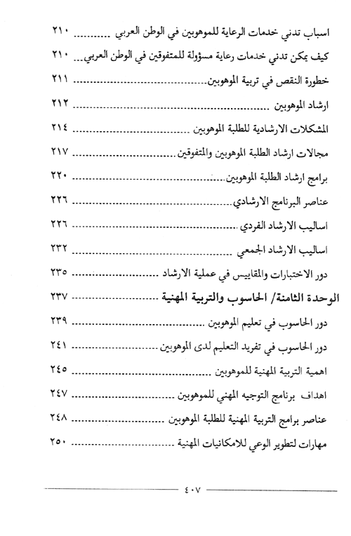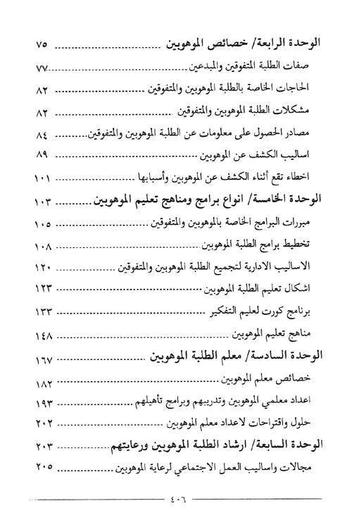 نبذة الناشر:يتطرق هذا الكتاب إلى تربية الموهوبين والمتفوقين وإلى مفهوم الذكاء وأنواعه وطرق قياسه وإلى مفهوم الموهبة وتعرفها من زوايا مختلفة وإلى تعرف الجمعية الأمريكية لها وإلى الدواعي الاهتمام بالموهوبين والمتفوقين وإلى مشكلاتهم وطرق حلها إلى صفاتهم التعليمية والانفعالية والقيادية وغيرها وإلى طرق الكشف عنهم ودور المدرسة والأهل في تربيتهم وإلى ...طرق إرشادهم وإلى معليميهم وصفاتهم وطرق اختيارهم وتدريبهم وإلى طرق إرشادهم وإلى مناهجهم التعليمية وأشكالها التسريعية والمكثفة وإلى مفهوم الإبداع وإلى تجارب الدول العربية بما فيها الأردن وعن تجاربها في تربيتهم وإلى تجربة المركز الريادي في السلط ومدرسة اليوبيل في الموهبة وكذلك الينورا "وكالة الغوث الدولية" وإلى تجربة جمهورية مصر العربية والعراق والكويت.