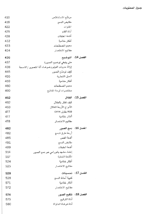 وتجدر الإشارة إلى أنه قد تمّ تحديث هذا الكتاب تحديثاً تاماً لكي يغطي المزايا الرائعة في فوتوشوب سي إس، بما في ذلك أربعة فصول جديدة مخصصة بالكامل حول كيفية استخدام نسق ملفات الكاميرا الخام، التلاعب بالألوان، التقنيات المتقدمة للأقنعة، وتقنيات التوضيح. بالإضافة إلى مراجعة شاملة وتنقيح للفصول المتعلقة باستخدام المنحنيات وتنقيح الصور، إلى جانب المئات من صور التمارين الجديدة، كل ذلك من أجل جعل هذا الكتاب وسيلة لا بد منها بالنسبة لكل مستخدم جادّ في مسألة تعلّم المزايا والوظائف القوية في فوتوشوب سي إس. إقرأ المزيد