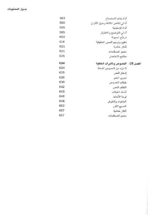 نبذة الناشر:هل أنت مستعد لكي تتعلم ليس فقط الطريقة والكيفية، بل السبب والمفهوم الذي تعمل على أساسه معظم مزايا ووظائف فوتوشوب؟ "أدوبي فوتوشوب سي إس- تقنيات الاستديو" يتخطى أسلوب التعليم التقليدي القائم على أساس الخطوات المتتالية ليقدّم للقارئ فهماً عميقاً لطريقة علم هذا البرنامج الذي يعتبر الرائد عالمياً في مجال تحرير ...ومعالجة الصور. وهذا الكتاب، أو الدليل، الحائز على جائزة تقدير والمصنّف أولاً ضمن الكتب الأكثر مبيعاً، يقودك في رحلة استخدام وظائف فوتوشوب ويساعدك على تعلّم التقنيات الأكثر تعقيداً، وذلك بلغة سهلة ومفهومة.
