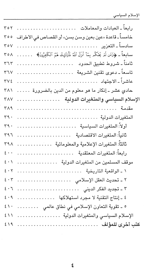 وقد تناول شعارات "الإسلام السياسي" واحداً بعد الآخر، بالدراسة والتحليل والتفنيد، وكان يتخذ من مصر أساساً للبنيان ومحوراً للحديث وذلك كنموذج، فما يصدق عليها يصدق على غيرها، إن اتفقت الظروف وتما ثلث الأحوال. وفي هذا الكتاب استخدم عنوانه "الإسلام السياسي" لأول مرة، كصفة للجماعات والهيئات التي تهدف إلى السياسة أساساً، وترمي إلى الحزبية أصلاً، وأن غلّفت أهدافها بأردية من الدين أو بأقنعة من الشريعة.نبذة الناشر:أراد الله للإسلام أن يكون ديناً، وأراد به الناس أن يكون سياسة والدين عام إنساني شامل، أما السياسة فهي قاصرة محدودة قبلية محلية ومؤقتة. وقصر الدين على السياسة قصر له على نطاق ضيق وإقليم خاص وجماعة معينة ووقت بذاته.