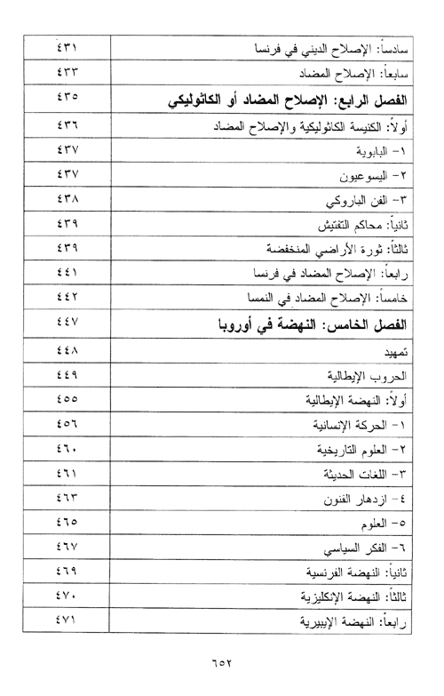 على هذا الأساس كانت هذه الموسوعة التي تقع ...في أربعة أجزاء تحتوي على (28) فصلاً يتشعب كل فصل إلى عدة مباحث وفي ثناياها فقرات فرعية لتشمل تاريخ أوروبا من العصور الوسطى 476 ميلادي وحتى نهاية الحرب الباردة بين القوتين العظمتين أواخر ثمانينيات القرن العشرين.